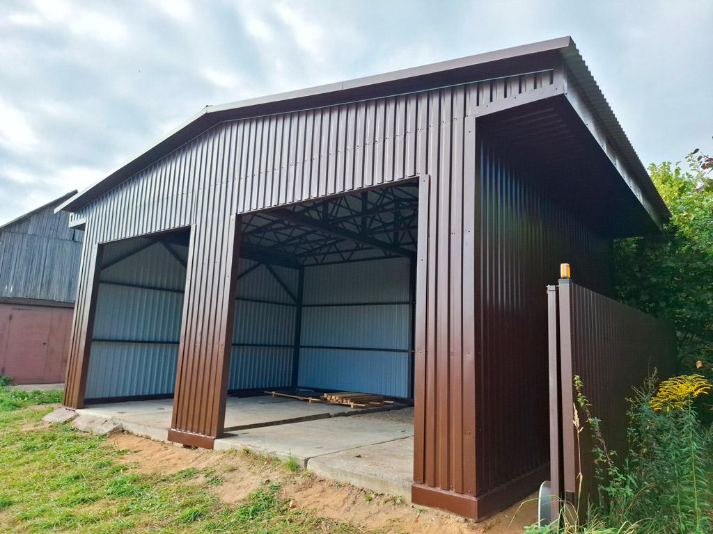 Холодный ангар — это металлокаркас, обшитый профилированным листом. Никакого утеплителя, никаких сложных сэндвич-панелей. Просто крыша и стены, которые защищают от осадков и ветра.